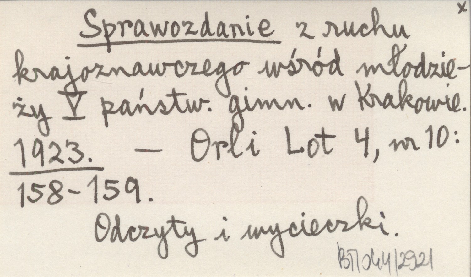 Orli Lot, 4, nr 10: 158-159. Odczyty i wycieczki.