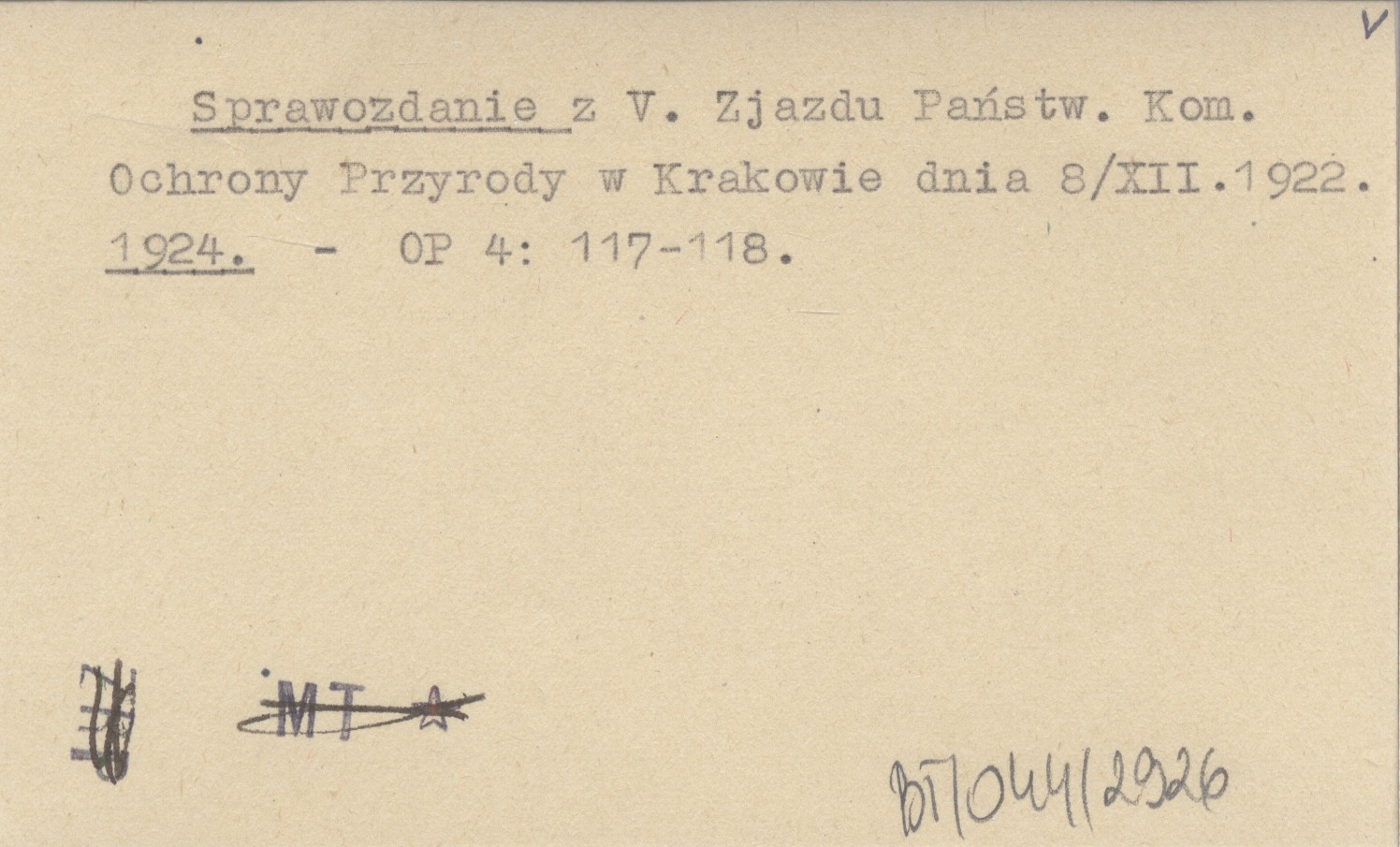 Sprawozdanie z V. Zjazdu Państw. Kom. Ochrony Przyrody w Krakowie dnia 8/XII 1922. 1924