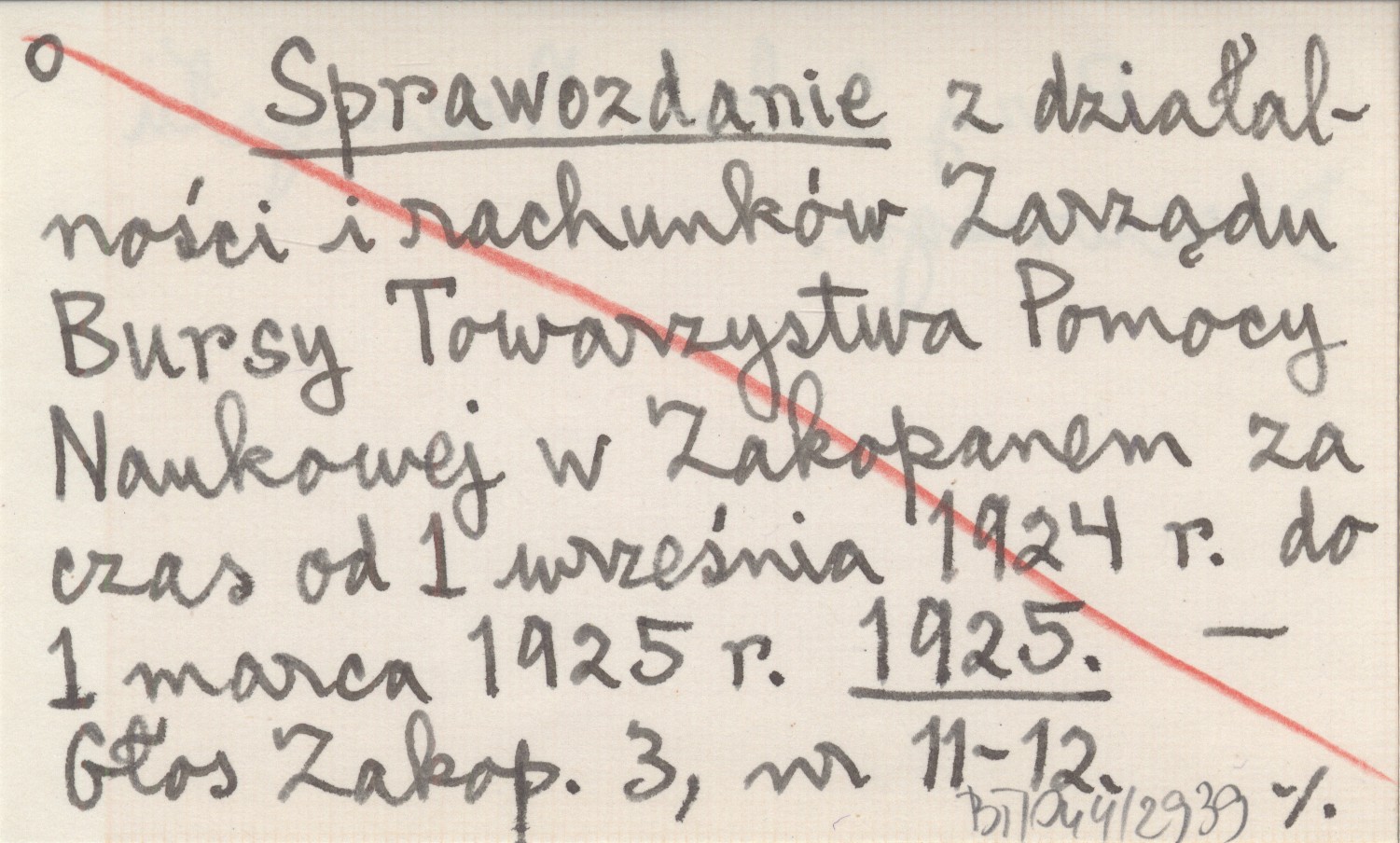 Sprawozdanie z działalności i rachunków Zarządu Bursy Towarzystwa Pomocy Naukowej w Zakopanem za czas od 1 września 1924 r. do 1 marca 1925 r. 1925