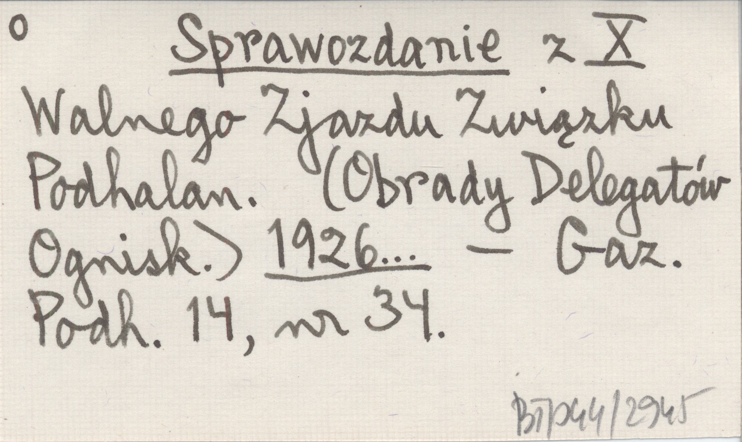 Sprawozdanie z X Walnego Zjazdu Związku Podhalan. (Obrady Delegatów Ognisk). 1926...