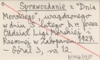 Sprawozdanie z "Dnia Morskiego", urządzonego w dniu 5 lutego b.r. przez Oddział Ligi Morskiej i Rzecznej w Zakopanem. 1927