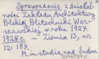 Sprawozdanie z działalności Zakładu Architektury Polskiej Politechniki Warszawskiej w roku 1927. 1928 c