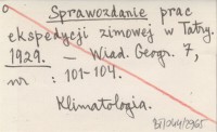Sprawozdanie prac ekspedycji zimowej w Tatry. 1929