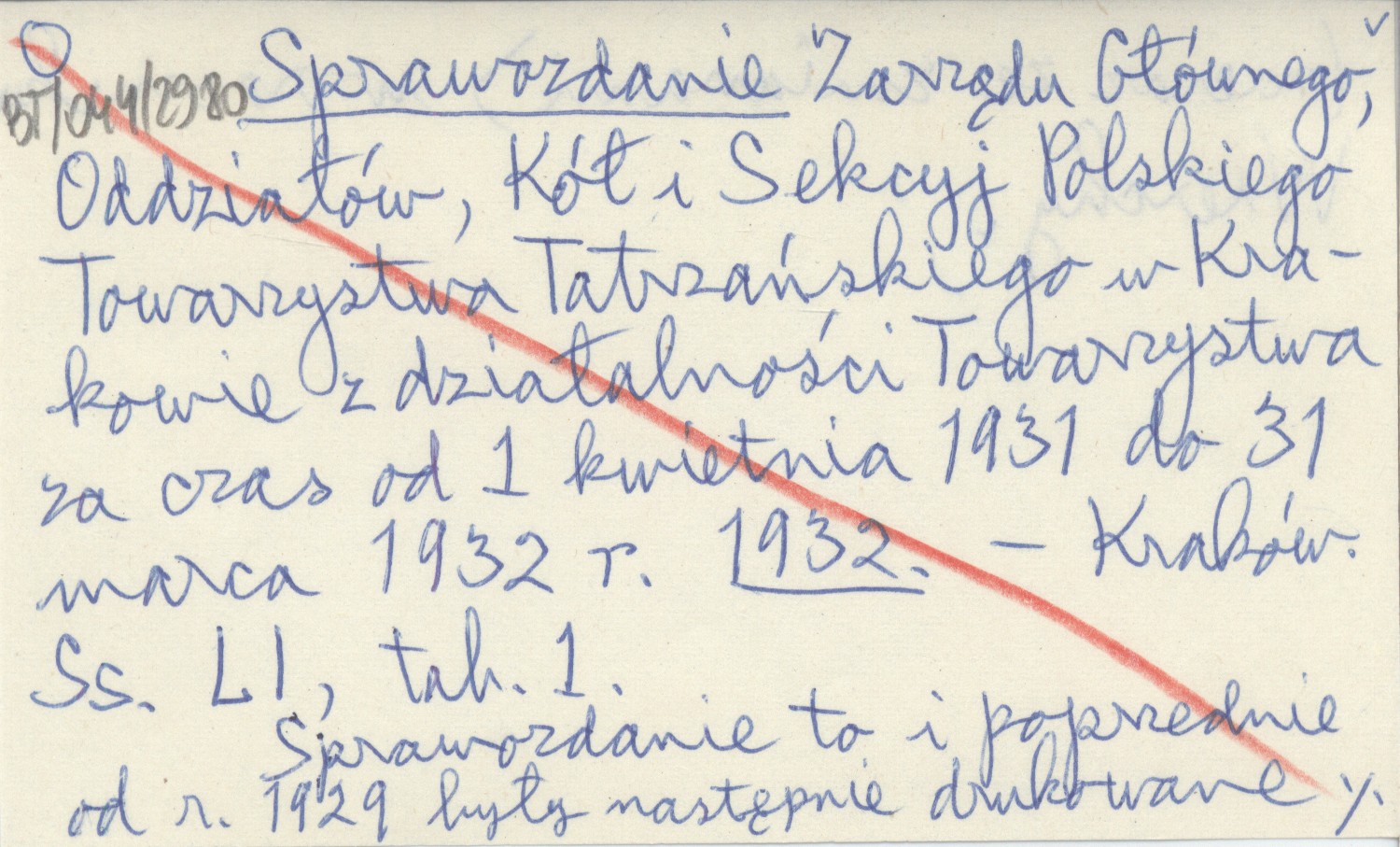 Kraków , LI s., 1 k. Sprawozdanie to i poprzednie od r. 1929 były następnie drukowane (nieraz ze zmianami) w roczniku Wierchy.
