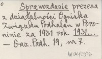 Sprawozdanie prezesa z działalności Ogniska Związku Podhalan w Poroninie za 1931 rok. 1931...