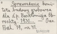 Sprawozdanie komitetu budowy grobowca dla ś.p. Bartłomieja Obrochty. 1931...