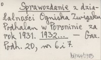 Sprawozdanie z działalności Ogniska Zawiązku Podhalan w Poroninie za rok 1931. 1932...