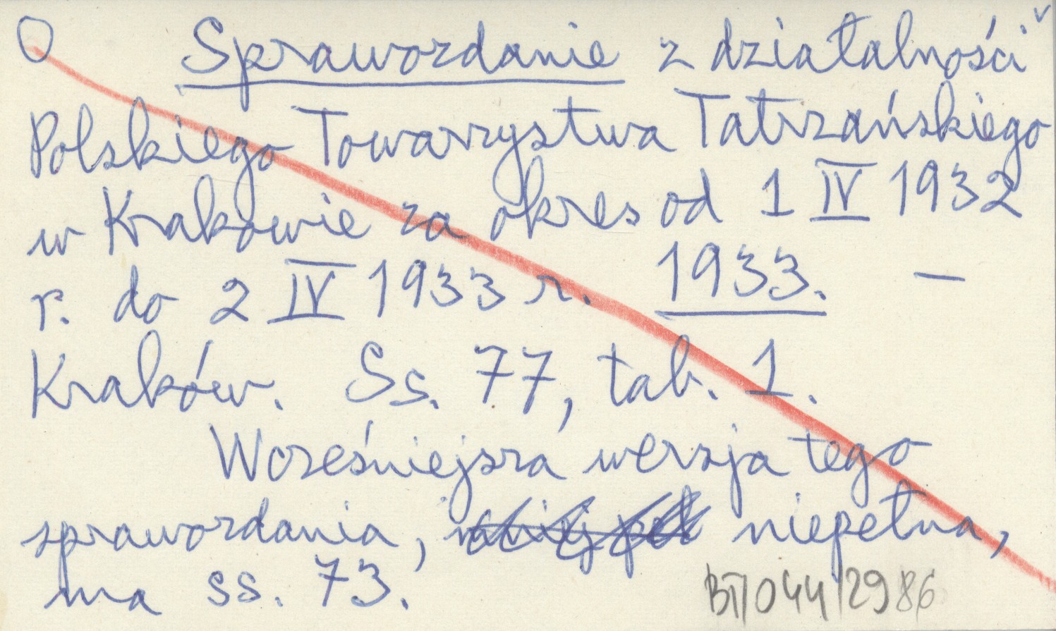 Kraków , 77 s., 1 k. Wcześniejsza wersja tego sprawozdania, niepełna, ma 73 s.