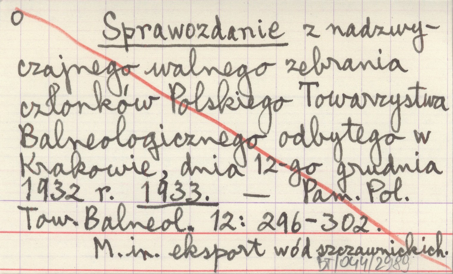 Sprawozdanie z nadzwyczajnego walnego zebrania członków Polskiego Towarzystwa Balneologicznego odbytego Krakowie, dnia 12-go grudnia 1932 r. 1933