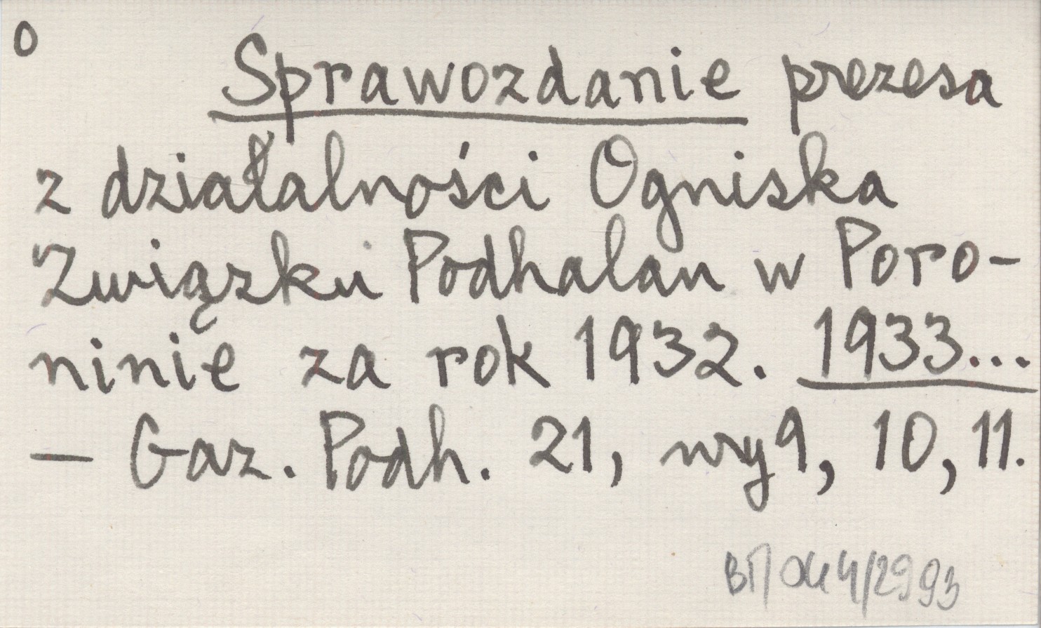 Sprawozdanie prezesa z działalności Ogniska Związku Podhalan w Poroninie za rok 1932. 1933...