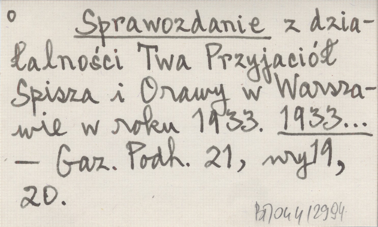 Sprawozdanie z działalności Twa Przyjaciół Spisza i Orawy w Warszawie w roku 1933. 1933...