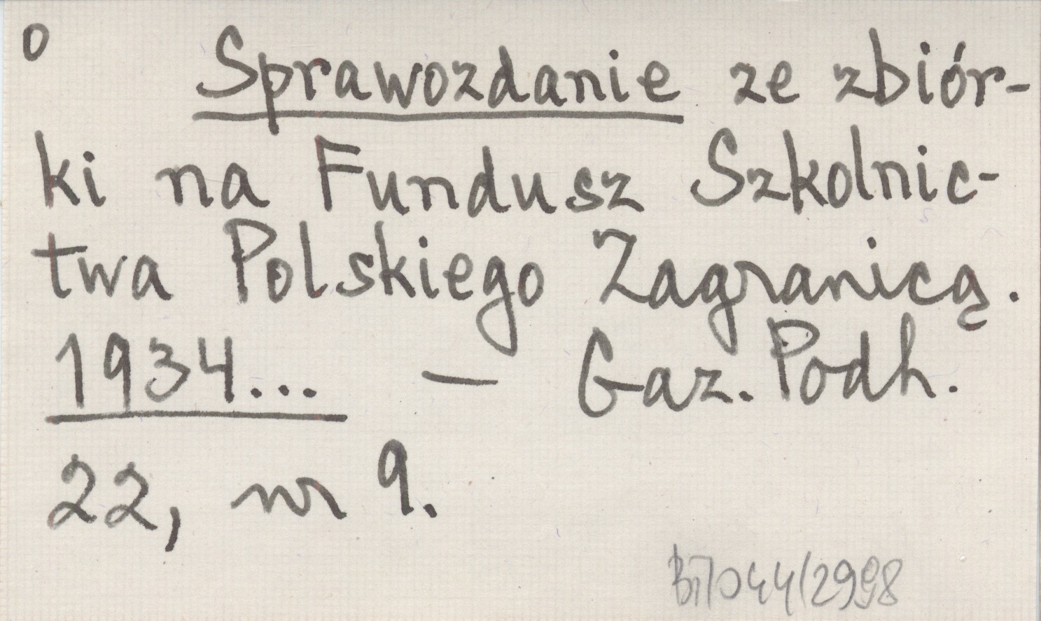 Sprawozdanie ze zbiórki na Fundusz Szkolnictwa Polskiego Zagranicą, 1934...