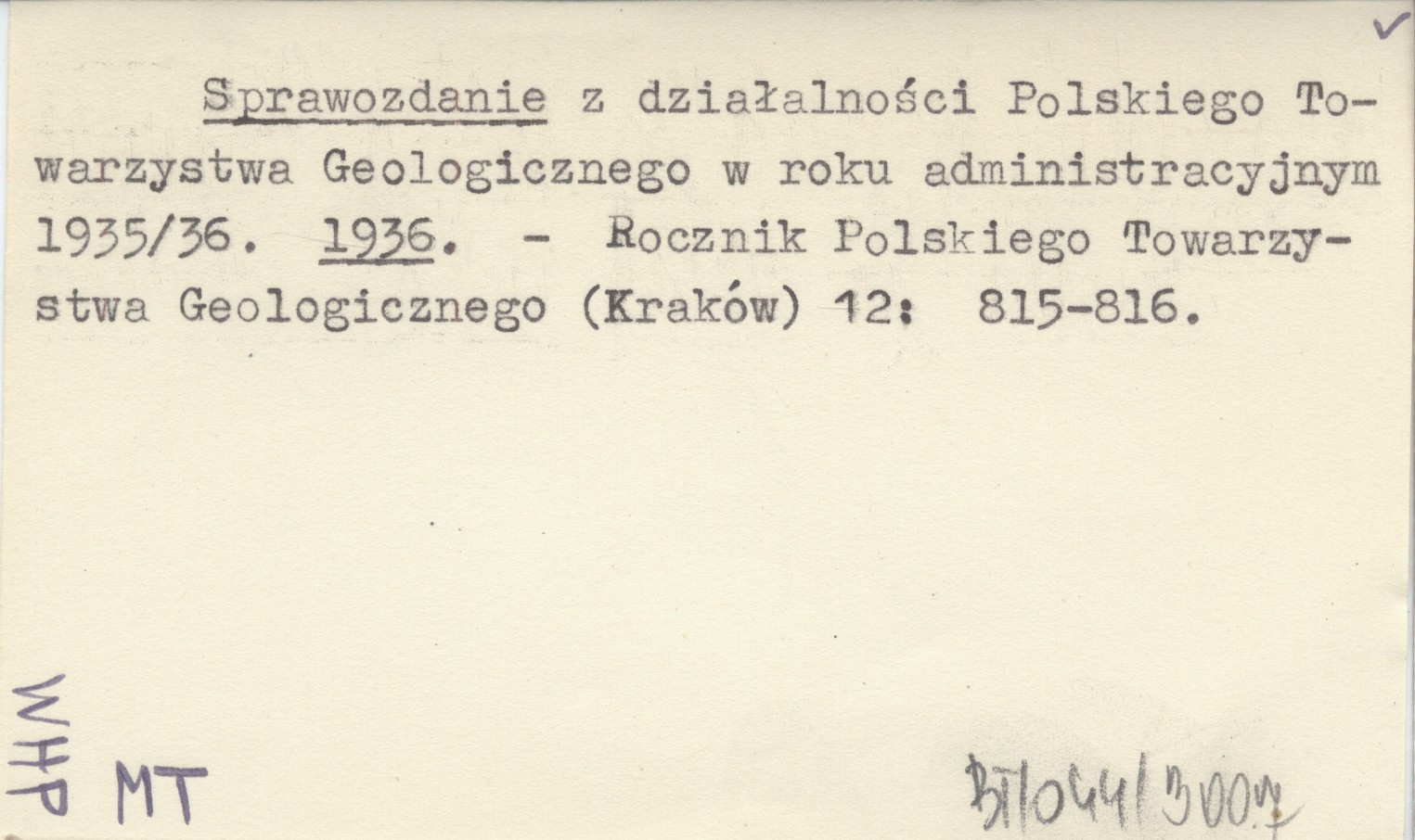 Sprawozdanie z działalności Polskiego Towarzystwa Geologicznego w roku administracyjnym 1935/36. 1936