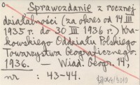 Sprawozdanie z rocznej działalności (za okres od 14 III 1935 r. do 30 III 1936 r.) Krakowskiego Oddziału Polskiego Towarzystwa Geograficznego. 1936
