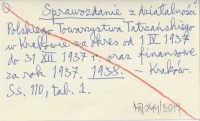 Sprawozdanie z działalności Polskiego Towarzystwa Tatrzańskiego w Krakowie za okres od 1 IV 1937 do 31 XII 1937 r. oraz finansowe za rok 1937. 1938