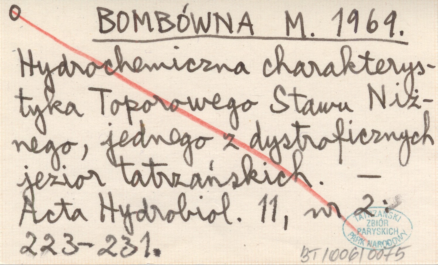 BOMBÓWNA M. 1969 Hydrochemiczna charakterystyka Toporowego Stawu Niżnego, jednego z dystroficznych jezior tatrzańskich.