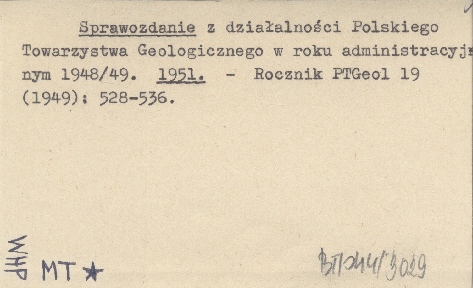 Sprawozdanie z działalności Polskiego Towarzystwa Geologicznego w roku administracyjnym 1948/49. 1951