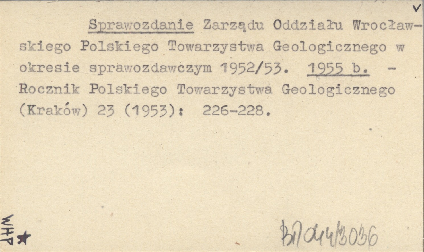 Sprawozdanie Zarządu Oddziału Wrocławskiego Polskiego Towarzystwa Geologicznego w okresie sprawozdawczym 1952/1953. 1955 b