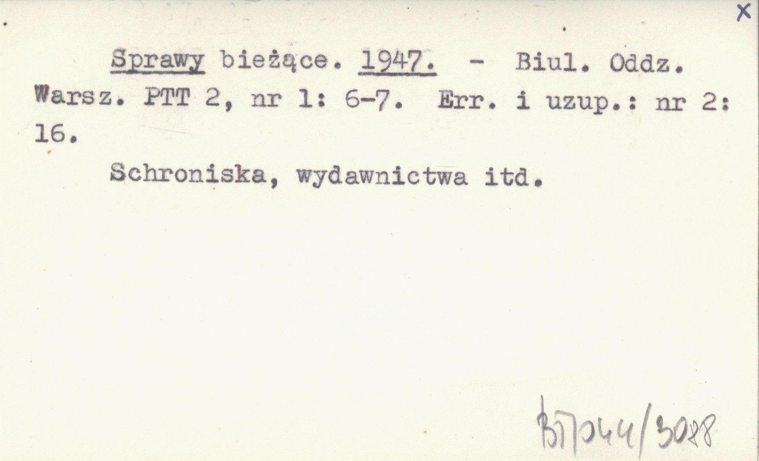 Biuletyn Oddziału Warszawskiego Polskiego Towarzystwa Tatrzańskiego, 2, nr 1: 6-7 ; nr 2: 16 (err. i uzup.). Schroniska, wydawnictwa itd.