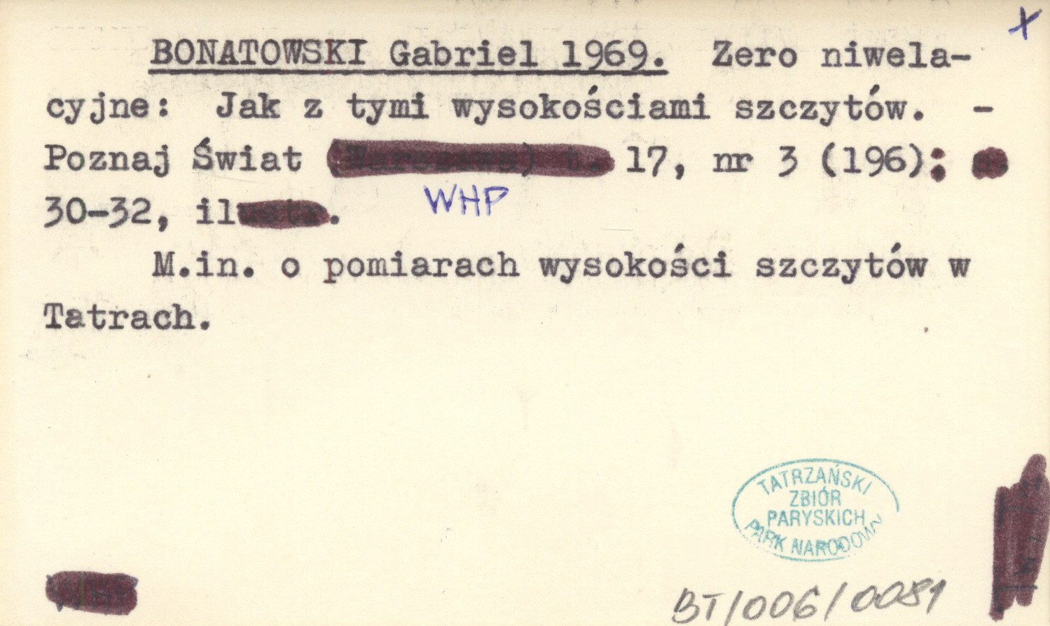 Poznaj Świat, 17, nr 3 (196): 30-32, il. M.in. o pomiarach wysokości szczytów w Tatrach.