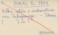 SOKAL E. 1904 Kilka słów o uzdrowotnieniu Zakopanego.