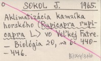 SOKOL J. 1965 Aklimatizácia kamzíka horského (Rupicapra rupicapra L.) vo Veµkej Fatre.