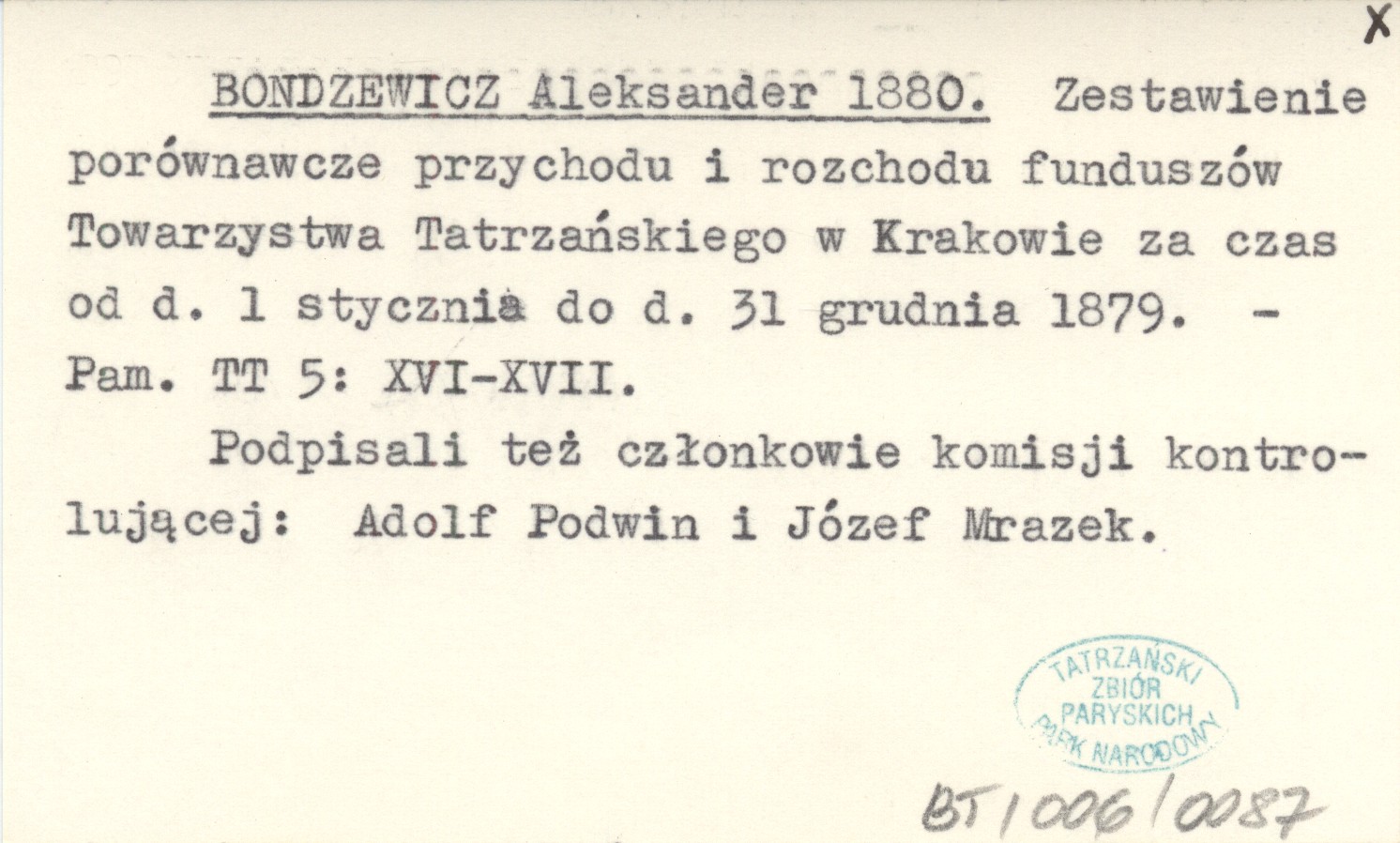 Pamiętnik Towarzystwa Tatrzańskiego, 5: XVI-XVII. Podpisali też członkowie komisji kontrolującej: Adolf Podwin i Józef Mrazek.