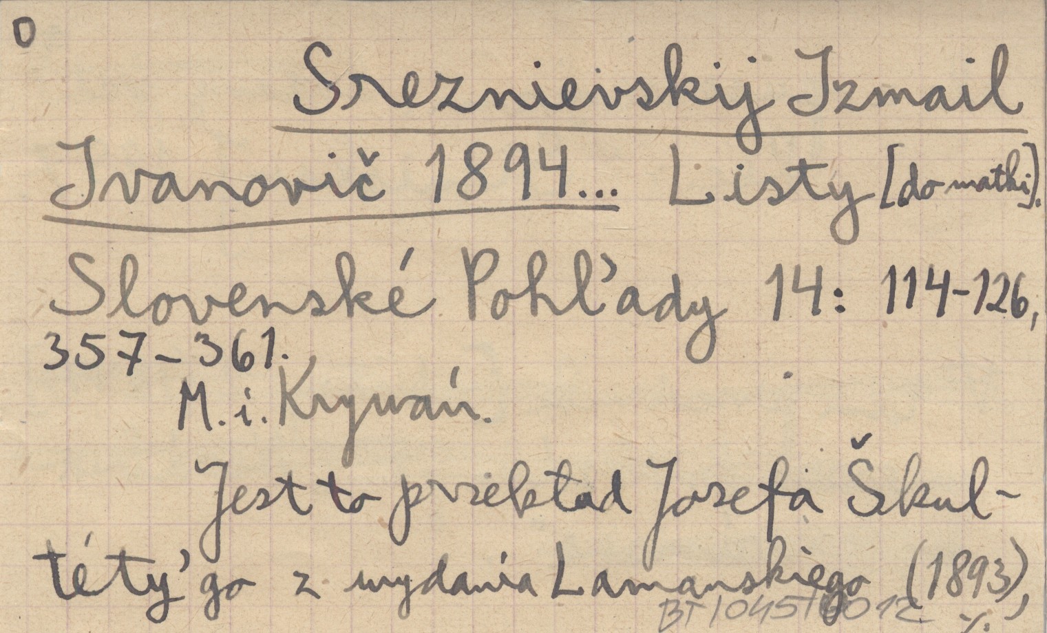 Slovenské Pohľady, T. 14: 114-126, 357-361. M. in. Krywań. Jest to przekład Jóżefa Škultéty'ego z wydania Lamanskiego (1893), ale z opuszczeniami. REC: STANISLAV J. 1957