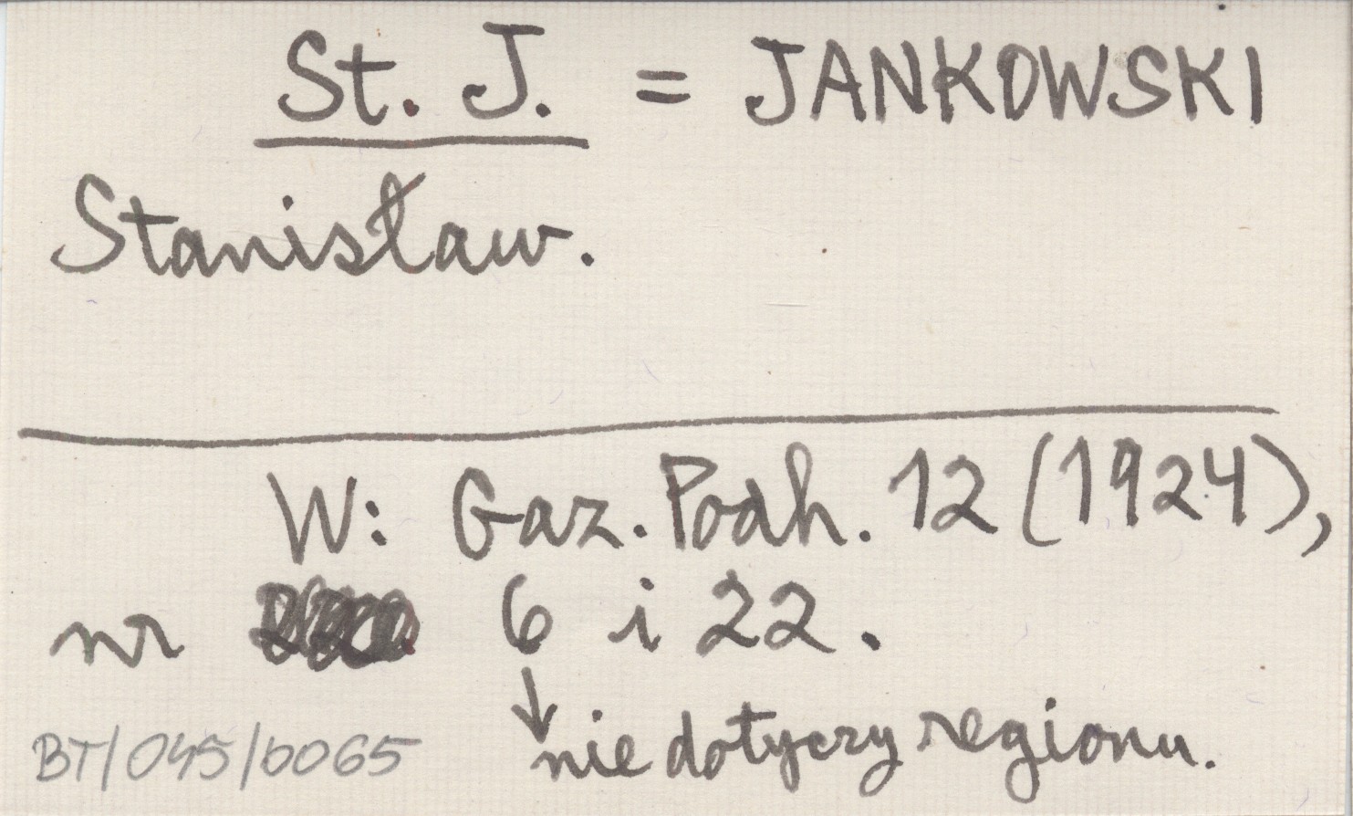St. J. JANKOWSKI Stanisław Gazeta Podhalańska 12 (1924), nr 6 (nie dotyczy regionu), 22.