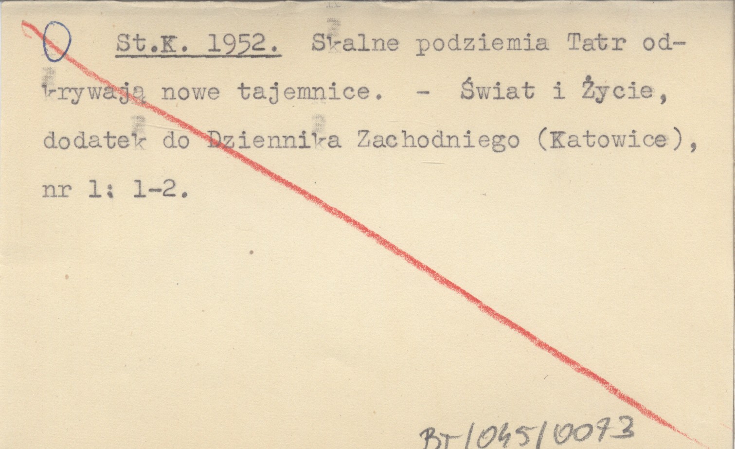 St. K. 1952 Skalne podziemia Tatr odkrywają nowe tajemnice.