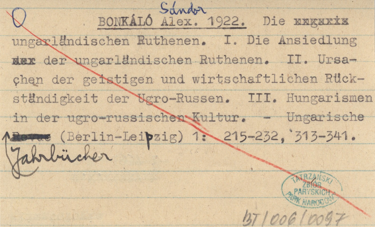 BONKÁLÓ Sándor 1922 Die ungarländischen Ruthenen. I. Die Ansiedlung der ungarländischen Ruthenen. II. Ursachen der geistigen und wirtschftlichen Rückständigkeit der Ugro-Russen. III. Hungarismen in der ugro-russischen Kultur.