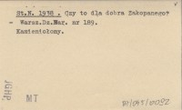 St. N. 1938 Czy to dla dobra Zakopanego?
