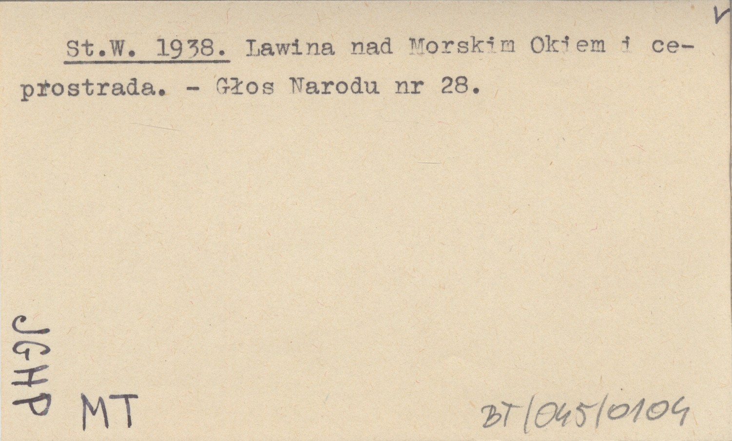 St. W. 1938 Lawina nad Morskim Okiem i ceprostrada.