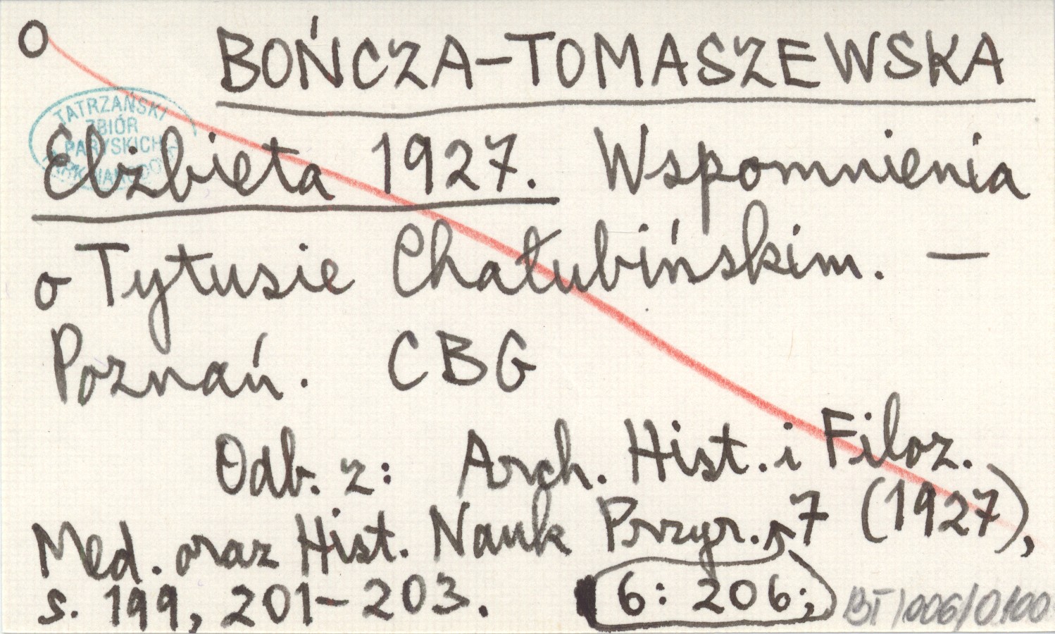 BOŃCZA-TOMASZEWSKA Elżbieta 1927 Wspomnienia o Tytusie Chałubińskim.
