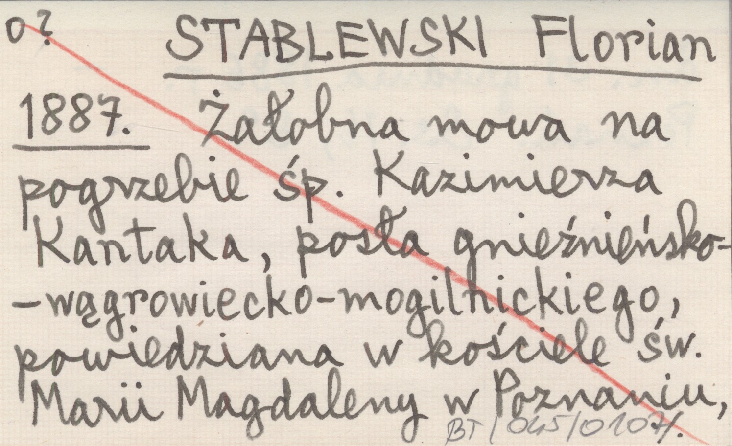 STABLEWSKI Florian 1887 Żałobna mowa na pogrzebie śp. Kazimierza Kantaka, posła gnieźnieńsko-wągrowiecko-mogilnickiego, powiedziana w kościele św. Marii Magdaleny w Poznaniu, dn. 31 grudnia 1886 r.