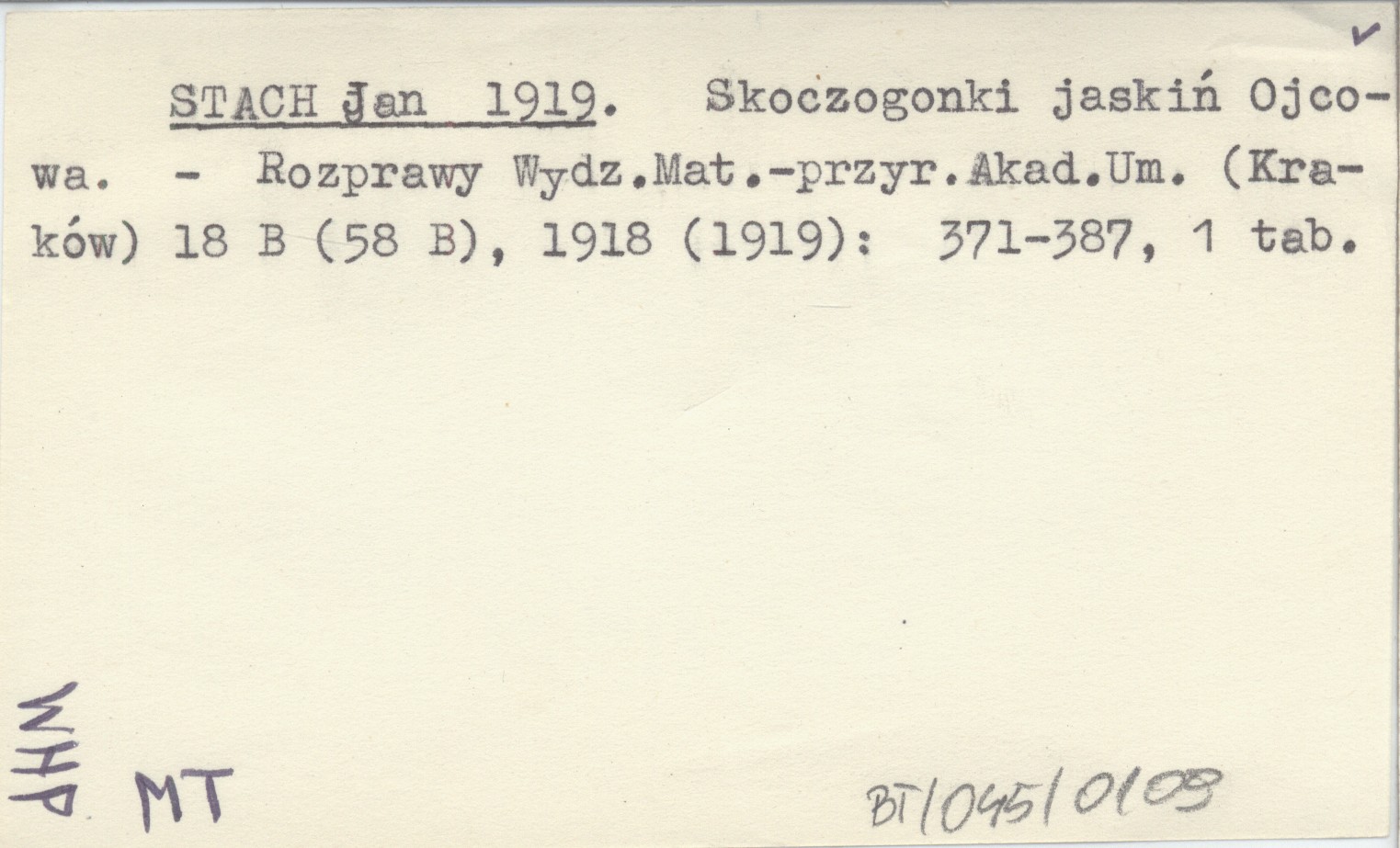 Rozprawy Wydziału Matematyczno-Przyrodniczego Akademii Umiejętności (Kraków) , 18 B (58 B), 1918 (1919): 371-387, 1 k.