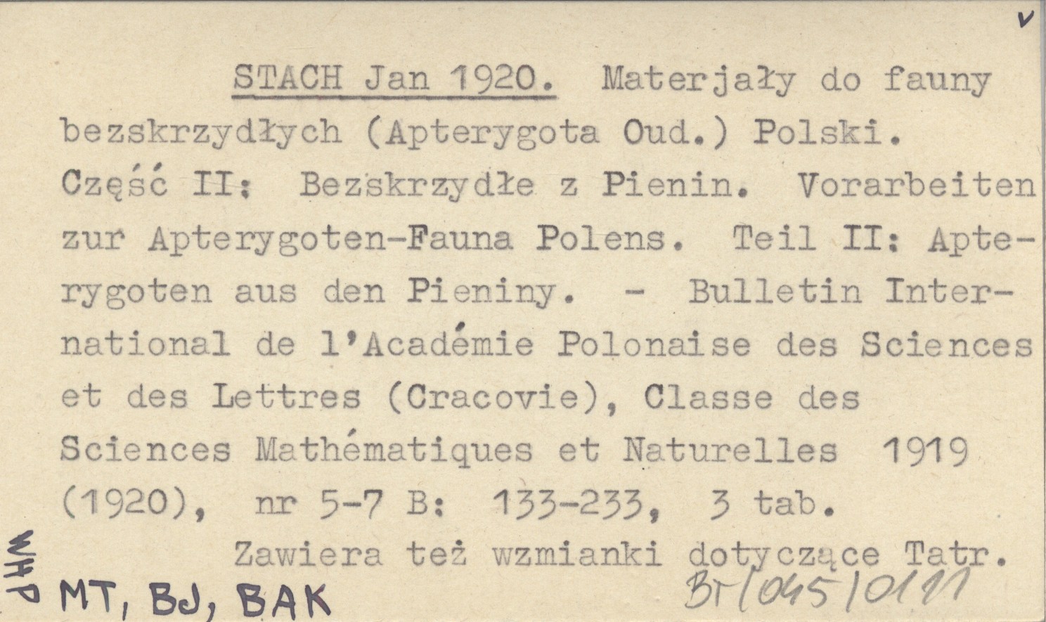 STACH Jan 1920 Materjały do fauny bezskrzydłych (Apterygota Oud.) Polski. Część II: Bezskrzydłe z Pienin. Vorarbeiten zur Apterygoten-Fauna Polens. Teil. II: Apterygoten aus den Pieniny.