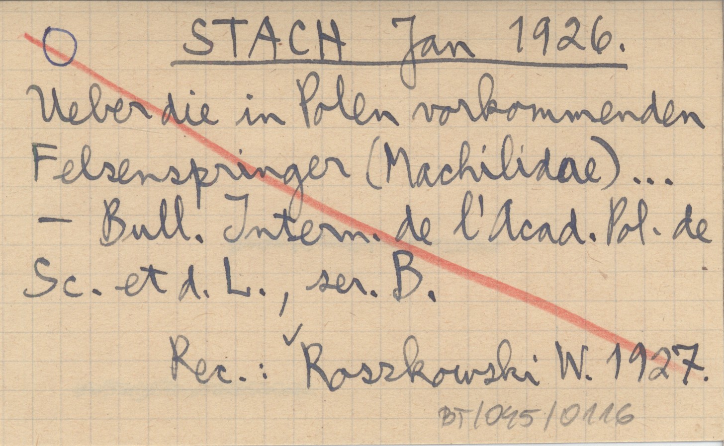 Bulletin International de l'Akadémie Polonaise des Sciences et des Lettres, Classe des Sciences Mathématiques et Naturalles, Ser. B. REC: ROSZKOWSKI W. 1927