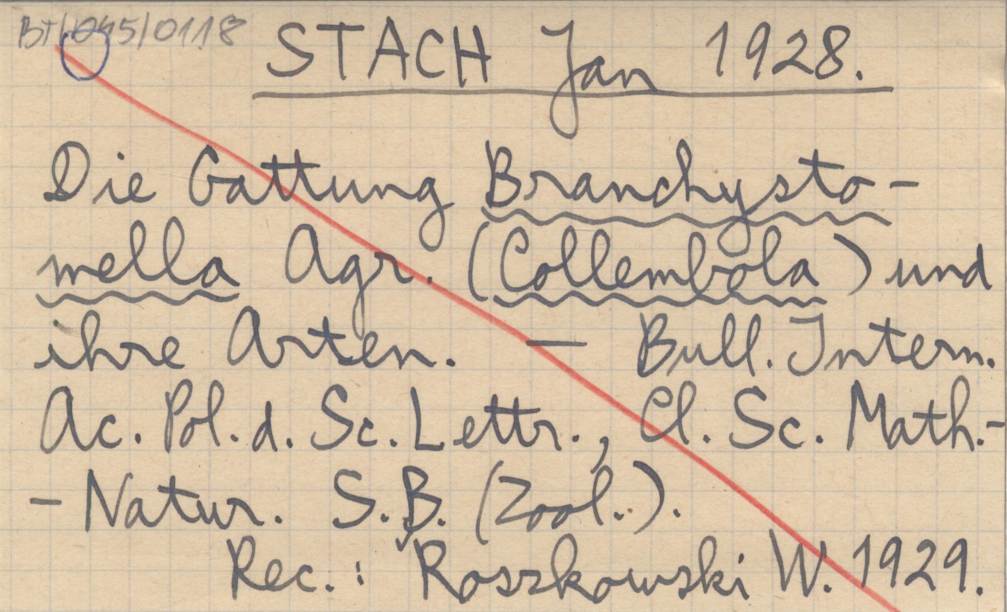 Bulletin International de l'Akadémie Polonaise des Sciences et des Lettres, Classe des Sciences Mathématiques et Naturalles, Ser. B (zool.) REC: ROSZKOWSKI W. 1929