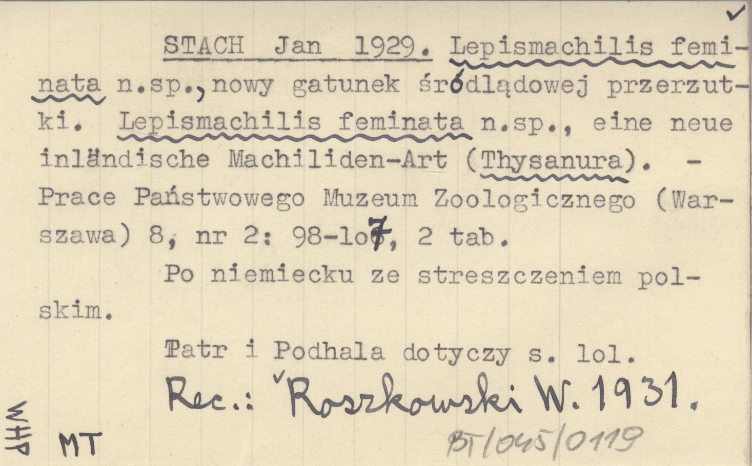 STACH Jan 1929 Lepismachilis feminata n.sp., nowy gatunek śródlądowej przerzutki. Lepismachilis feminata n.sp., eine neue inländische Machiliden-Art (Thysanura).
