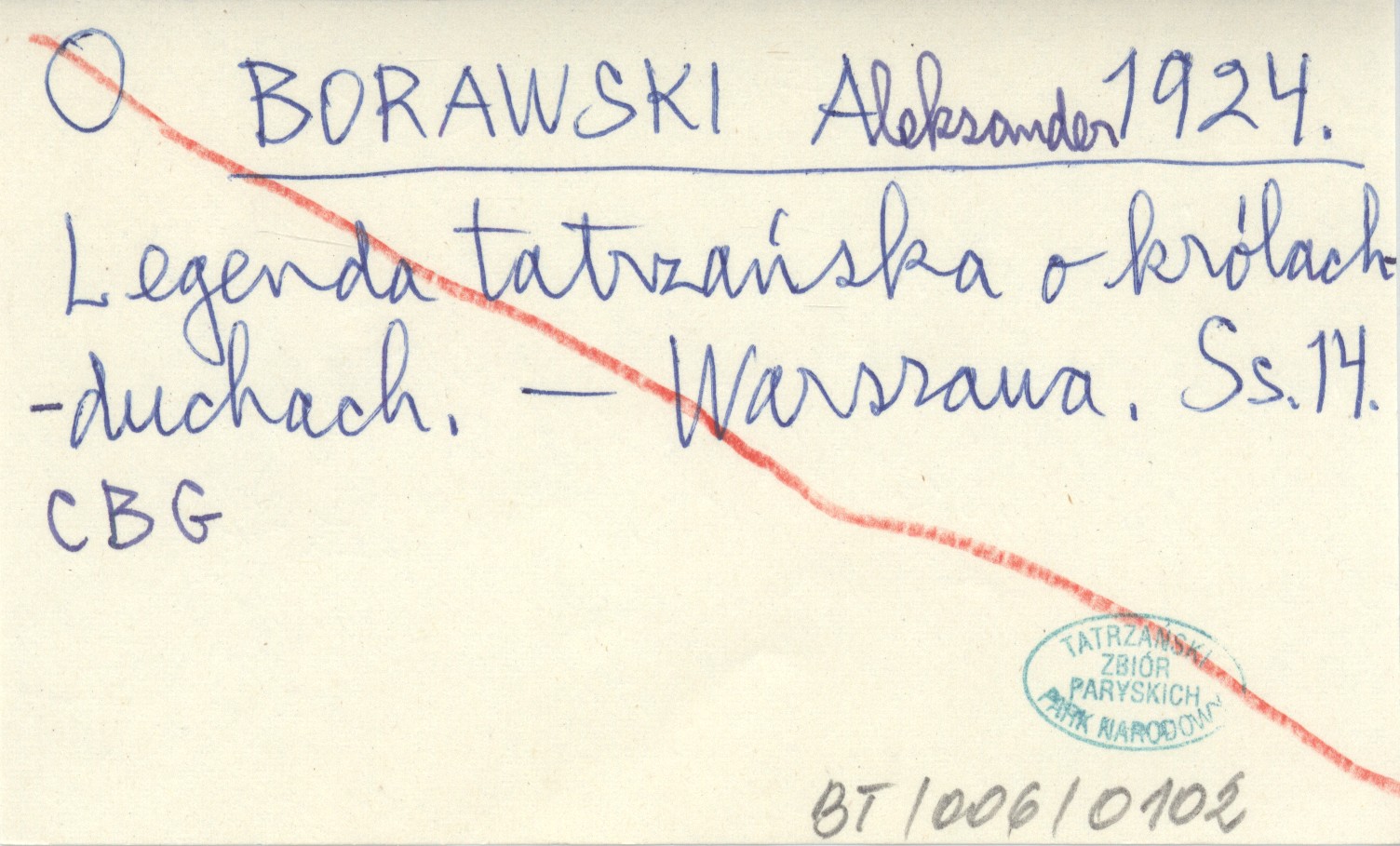 BORAWSKI Aleksander 1924 Legenda tatrzańska o królach-duchach.