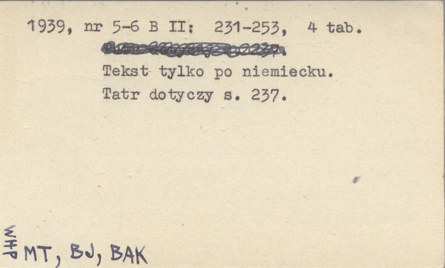 Bulletin International de l'Akadémie Polonaise des Sciences et des Lettres, Classe des Sciences Mathématiques et Naturalles (Cracovie) , 1939, nr 5-6 B II: 231-253, 4 k. Tatr dotyczy s. 237. Tekst tylko po niemiecku.