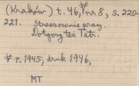 Sprawozdania z Czynności i Posiedzeń Polskiej Akademii Umiejętności (Kraków) , T. 46 (1945, druk 1946), nr 8: 220-221. Dotyczy też Tatr. Streszczenie pracy.