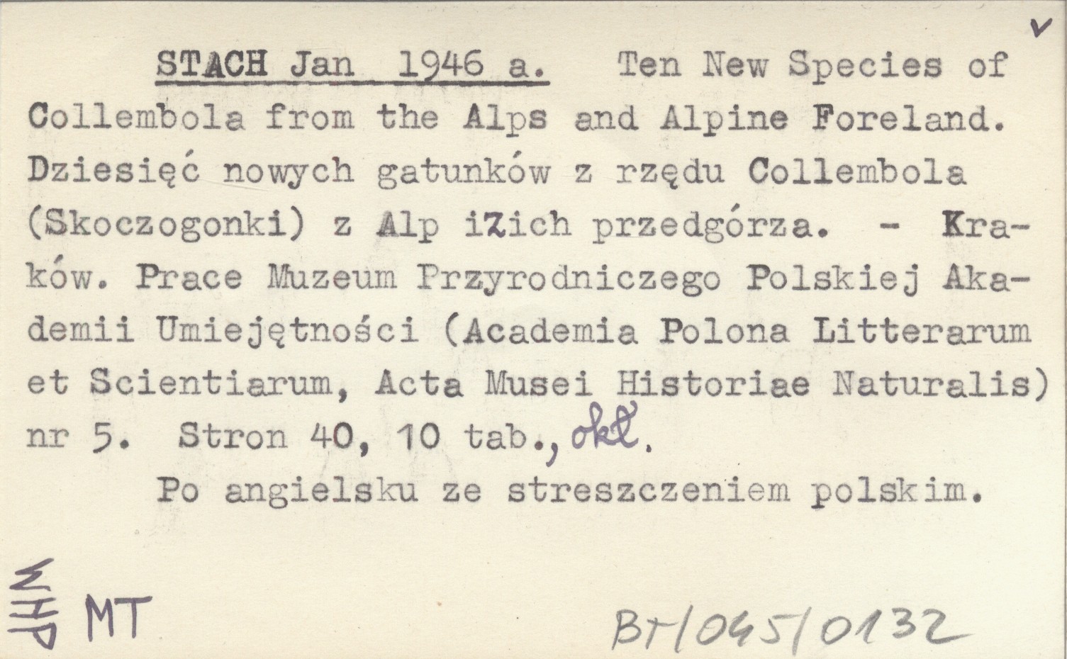 STACH Jan 1946 a The New Species of Collembola from the Alps and Alpine Foreland. Dziesięć nowych gatunków z rzędu Collembola (Skoczogonki) z Alp izich przedgórza.