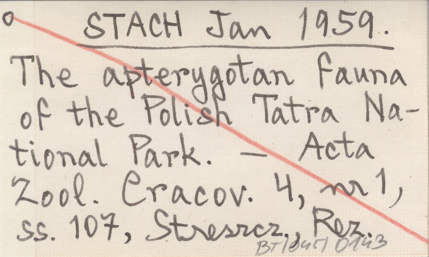STACH Jan 1959 The apterygotan fauna of the Polish Tatra National Park.