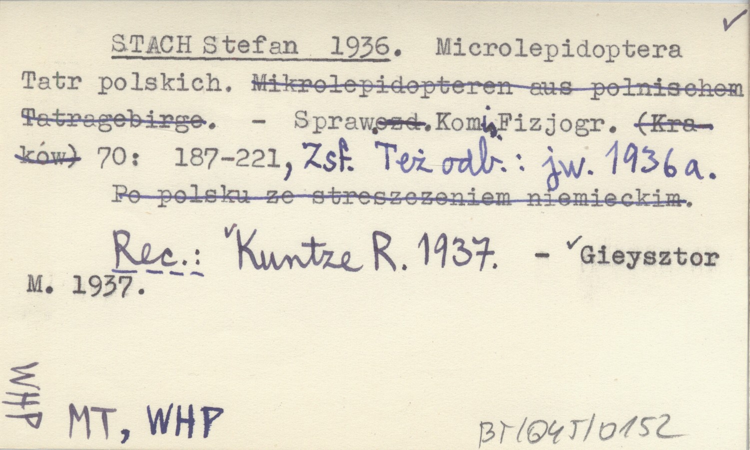 Sprawozdanie Komisji Fizjograficznej, 70: 187-221, Zsf. Też odb.: jw. 1936 a. REC: KUNTZE R. 1937 ; GIEYSZTOR M. 1937 ;