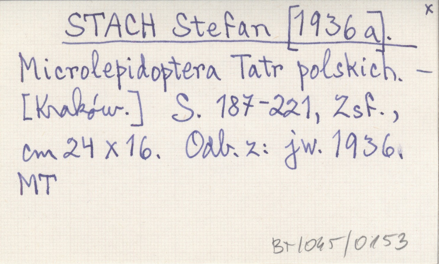 STACH Stefan [1936 a] Microlepidoptera Tatr polskich.