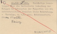 STACHE Gustav 1868 Vorläufige Bemerkungen über die tectonische Bedeutung der Klippen im Gebirgsbau der Karpathen und die wahrscheinlichen Ursachen ihrer Entstehung.