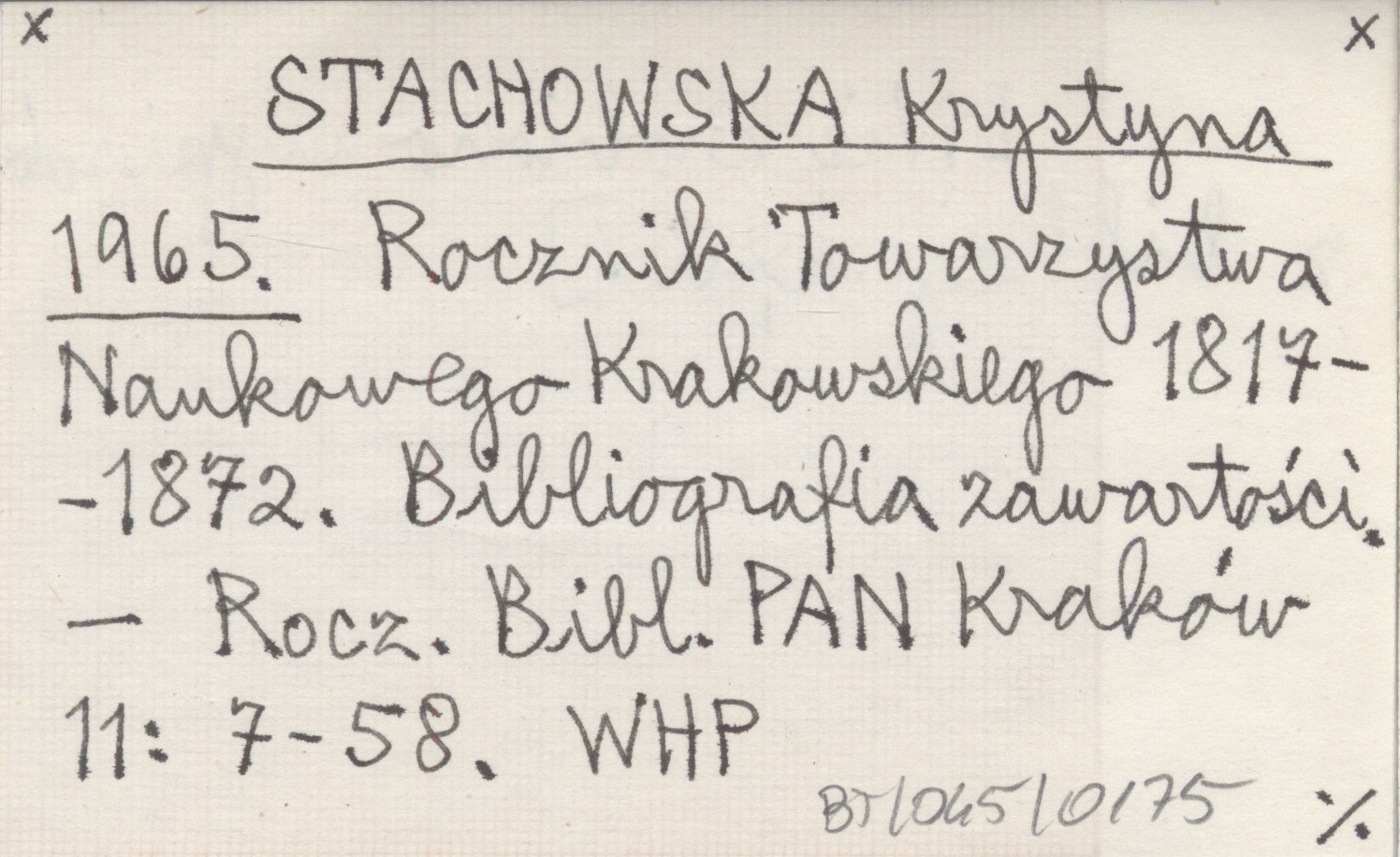 STACHOWSKA Krystyna 1965 Rocznik Towarzystwa Naukowego Krakowskiego 1817-1872. Bibliografia zawartości.