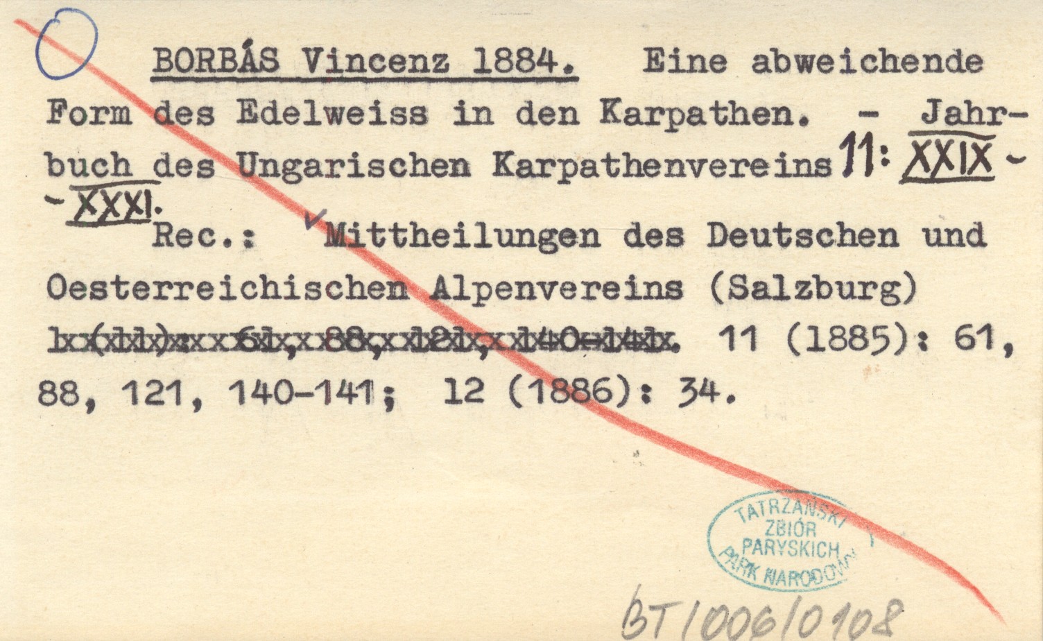 BORBÁS Vincenz 1884 Eine abweichende Form des Edelweiss in den Karpatehn.